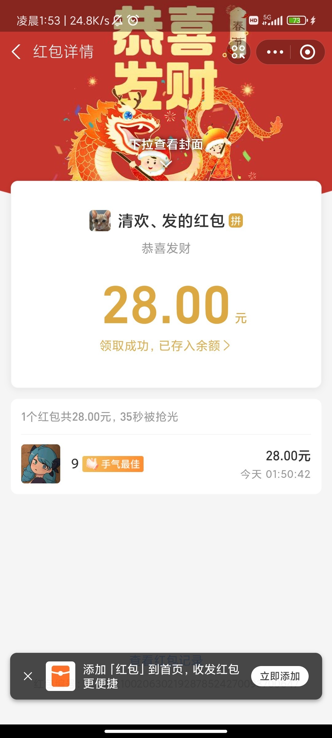 春节福利抽到我了 美滋滋